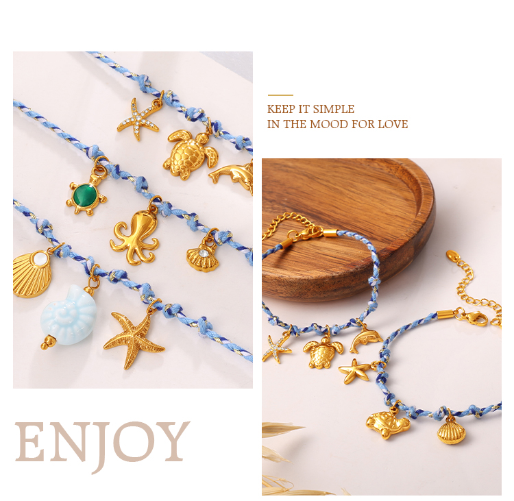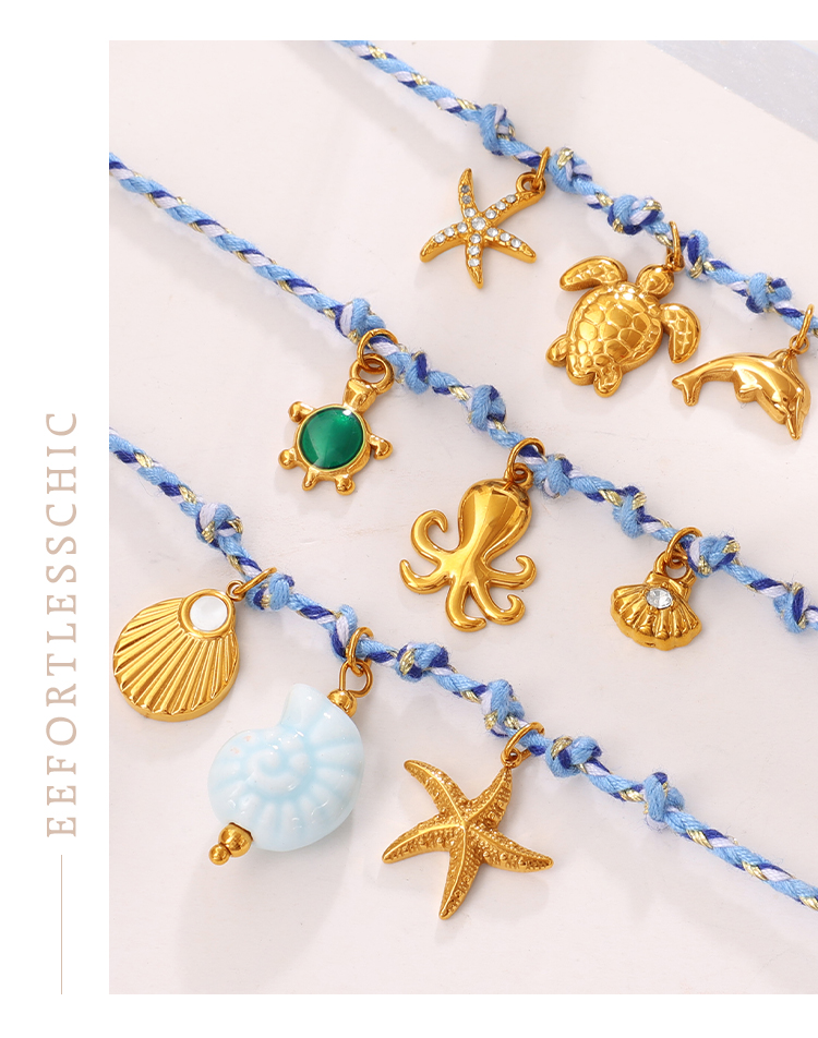 Elevate your beach-ready look with our 2026 spring ocean-inspired braided jewelry set! Crafted from durable stainless steel with vibrant dripping oil and sparkling rhinestone accents, this set features whimsical sea creature charms like starfish, turtles, and lobsters. The adjustable blue cord ensures a perfect fit, making it ideal for summer vacations, coastal getaways, or everyday wear. Stand out with a unique, bohemian vibe that ca